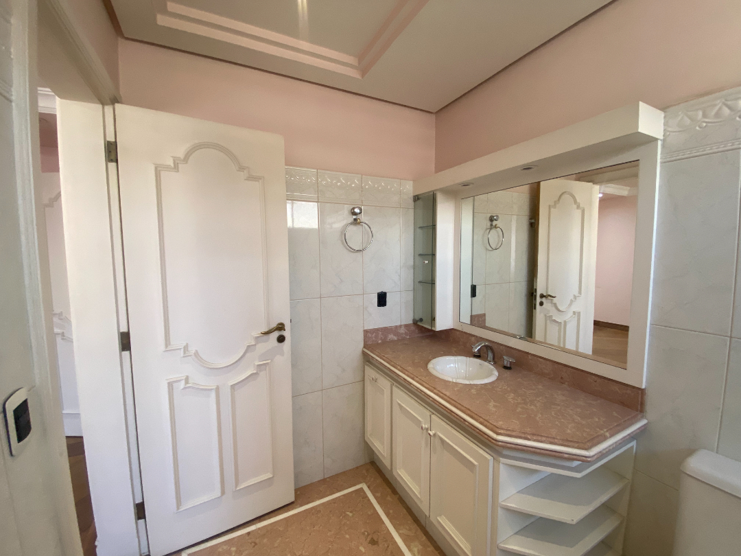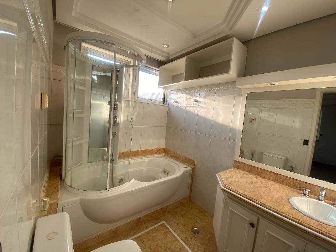 Primeiro pavimento: 3 Suítes com hidromassagem e com armários, Sala ampla para 3 ambientes, cozinha ampla repleta de armários, área de serviço ampla e funcional, com armários planejados e despensa.